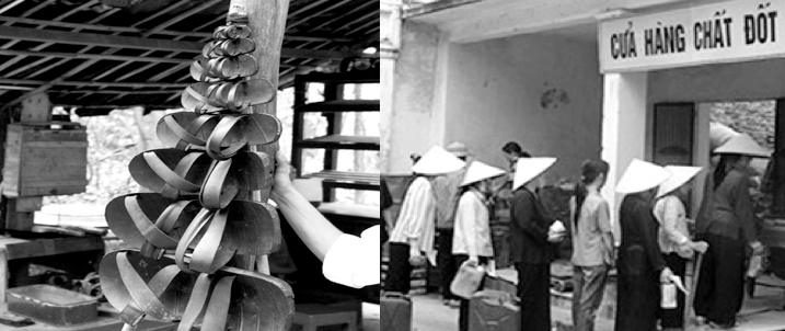 So với miền Nam- Ngắm nh́n h́nh ảnh bà con nhân dân miền Bắc và Hà Nội – CS/XHCN với chế độ “tem phiếu” tranh nhau từng chiếc “lốp” xe đạp, mảnh thịt, lạng đường, hộp diêm ngày đó… mà buồn nản đến nao ḷng.