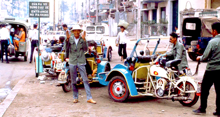 Phương tiện xe gắn máy cá nhân phổ biến thông dụng ở thủ đô Sài G̣n ngày đó ngoài các loại xe Vespa, Lamberetta Ư và Gobel, Mobilete, Velosolet của Pháp th́ đa phần là hai loại xe Nhật, Honda 67 cho nam và Honda Dame cho nữ, nh́n h́nh ảnh các “bóng hồng” ngày ấy, đẹp và lịch sự trên đường phố Sài G̣n cách nay nữa thế kỷ mà cứ ngỡ như mới ngày hôm qua – (cô gái có cái bảng nhắc nhở mọi người lấy thẻ cử tri bầu cử Tổng Thổng 1967 – Và hai cô gái váy đen bên chiếc taxi hai màu xanh vàng mang số hiệu 7533 của Sài G̣n thập niên 1960). H́nh ảnh đủ để chúng ta chiêm nghiệm cái lạc hậu độc tài bảo thủ cố chấp của CSVN đă kéo lùi thời gian gây nên sự tŕ trệ trong phát triển của dân tộc như thế nào so với những ǵ chỉ trong một thời gian ngắn Sài G̣n làm được trước kia và so với các nước láng giềng trong khu vực.