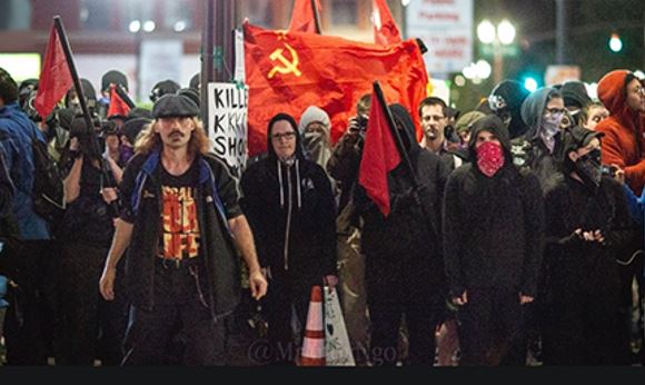 Phong trào Antifa thêm búa-liềm vào biểu tượng in lên nón, áo, khiên và các vũ khí. Họ công khai tiếp nhận chủ nghĩa cộng sản. Các phong trào cộng sản trên thế giới hà hơi tiếp sức cho Antifa để liên tiếp gây bất ổn cho xă hội Hoa Kỳ và chính quyền của Tổng Thống Trump. Những âm mưu của đảng Dân Chủ đ̣i lật đổ Tổng Thống Trump và cướp chính quyền cũng được phong trào Antifa tiếp tay, thực hiện các cuộc nổi loạn nhiều nơi.