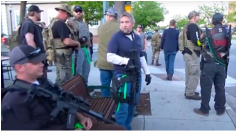 Các dân quân ở một góc phố Coeur d’Alene, chiều Thứ Hai June.1.2020 (photo by: @Pucktography)