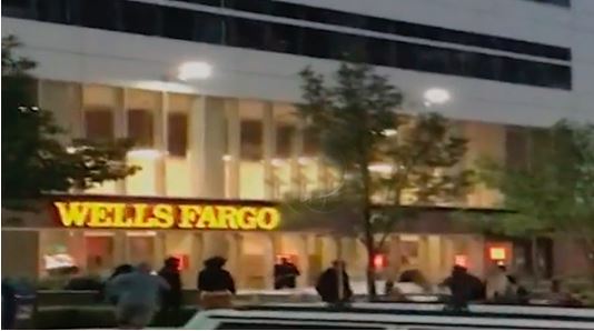 Nhà băng Wells Fargo ở downtown Spokane bị đập bể kính của sổ ngang hông vào đêm Chủ Nhật June.31.2020.