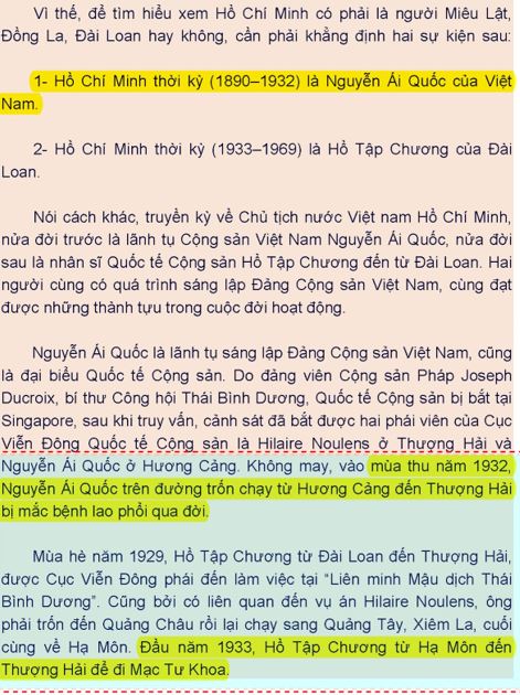 Trích-đoạn ở trên nằm trong phần "B- Hồ Chí Minh có phải đến từ Đài Loan?" của chương "Mục lục & Lời mở đầu cho Sinh b́nh khảo".