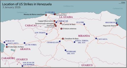 Những vị trí Hoa Kỳ tấn công ngày 3 tháng Giêng 2026